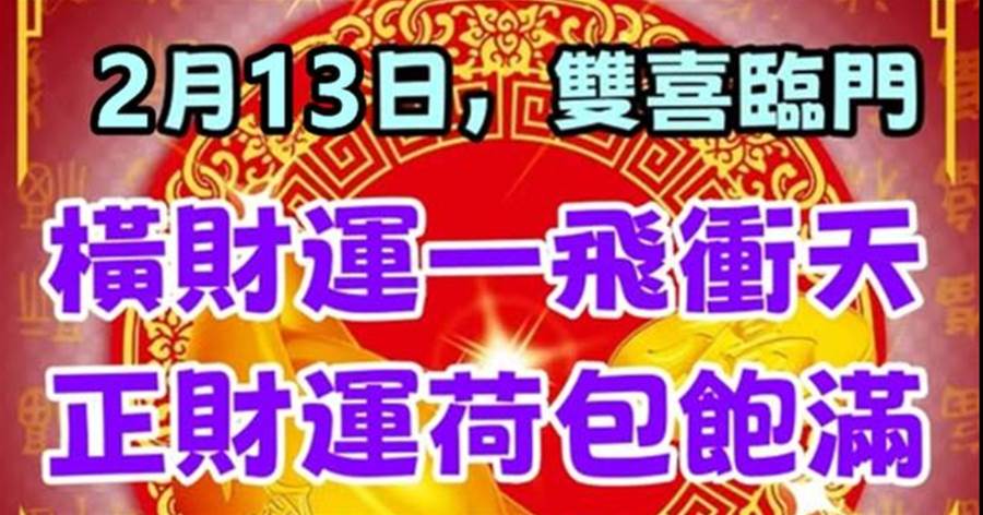 2月13日雙喜臨門,橫財運一飛沖天,正財運荷包飽滿!這些生肖快接福!!