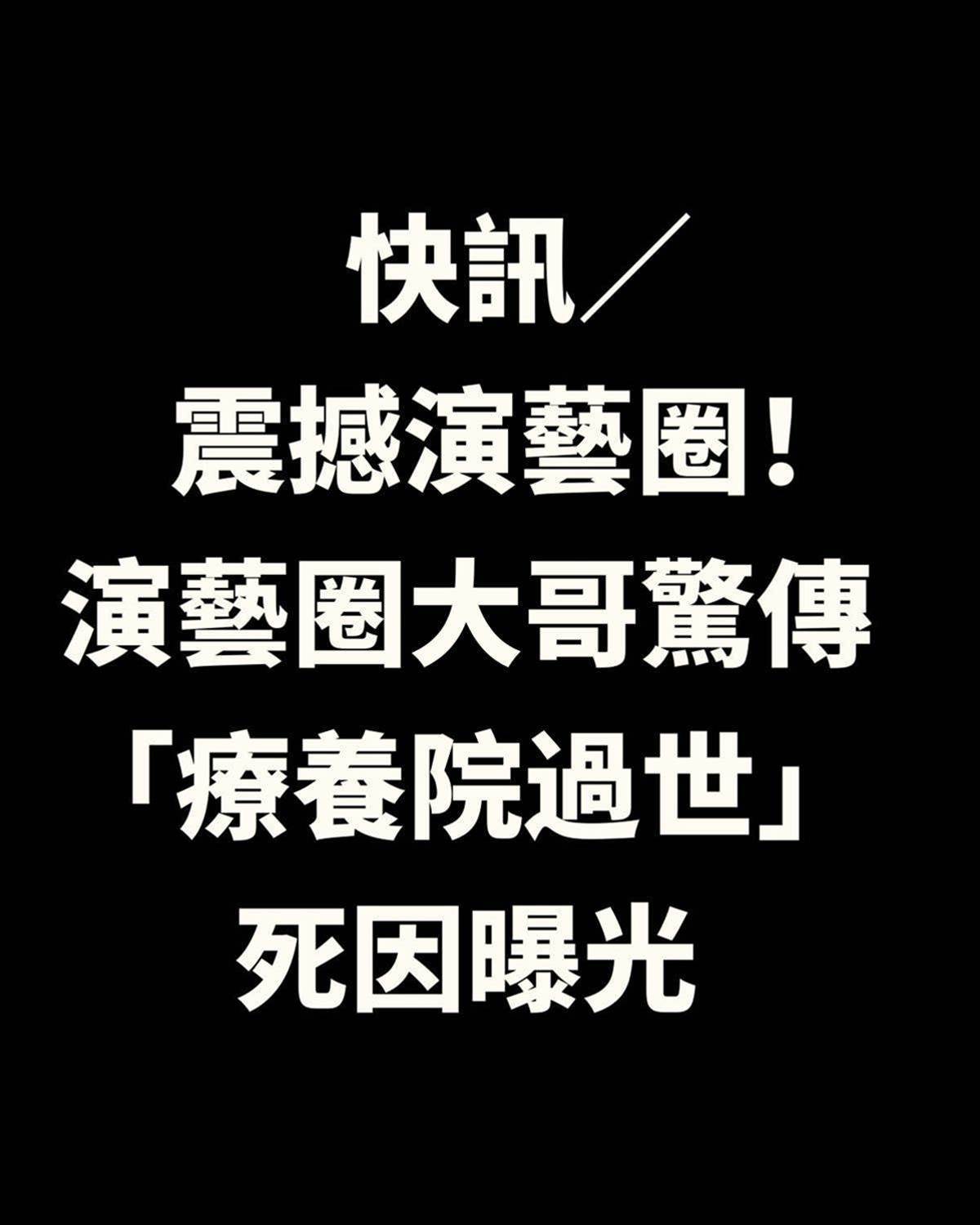 快訊/知名演藝圈!演藝圈大哥驚傳「療養院過世」死因曝光
