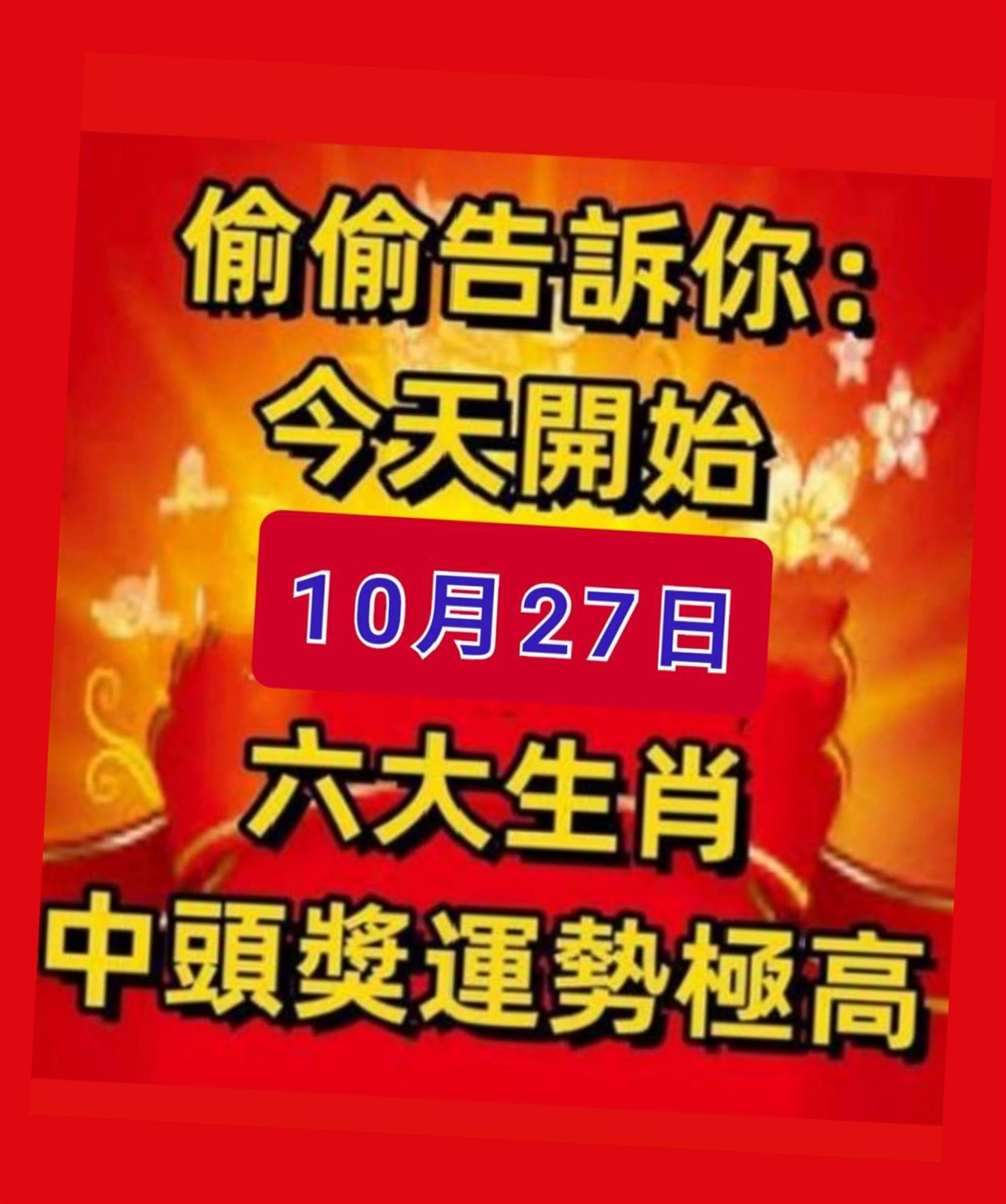 偷偷告訴你 :10月27日 開始 六大生肖 中獎運勢極高