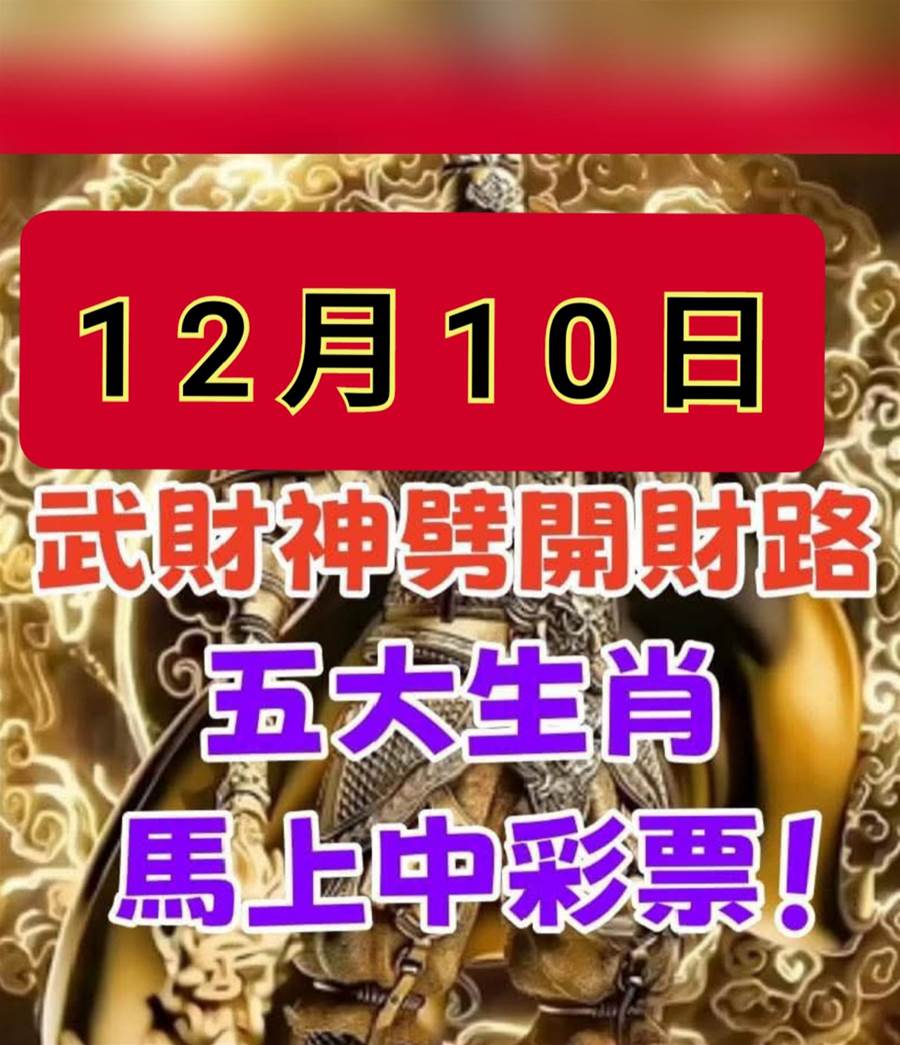 12月10日 武財神劈開財路 五大生肖 馬上有喜事到來