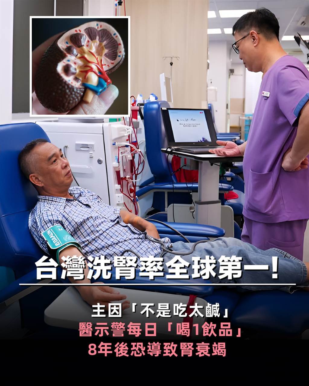台灣洗腎率全球第一!主因「不是吃太鹹」醫示警每日「喝1飲品」8年後恐導致腎衰竭