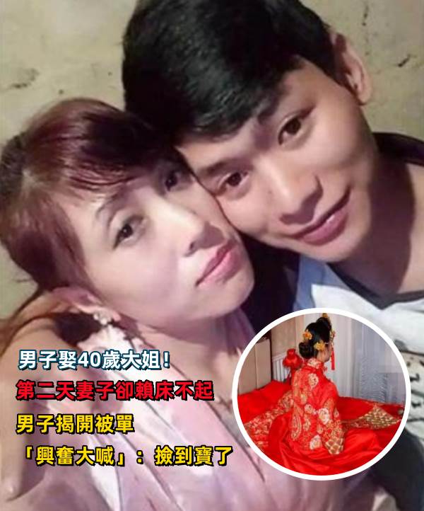 男子娶40歲大姐!第二天妻子卻賴床不起 男子揭開被單「興奮大喊」:撿到寶了