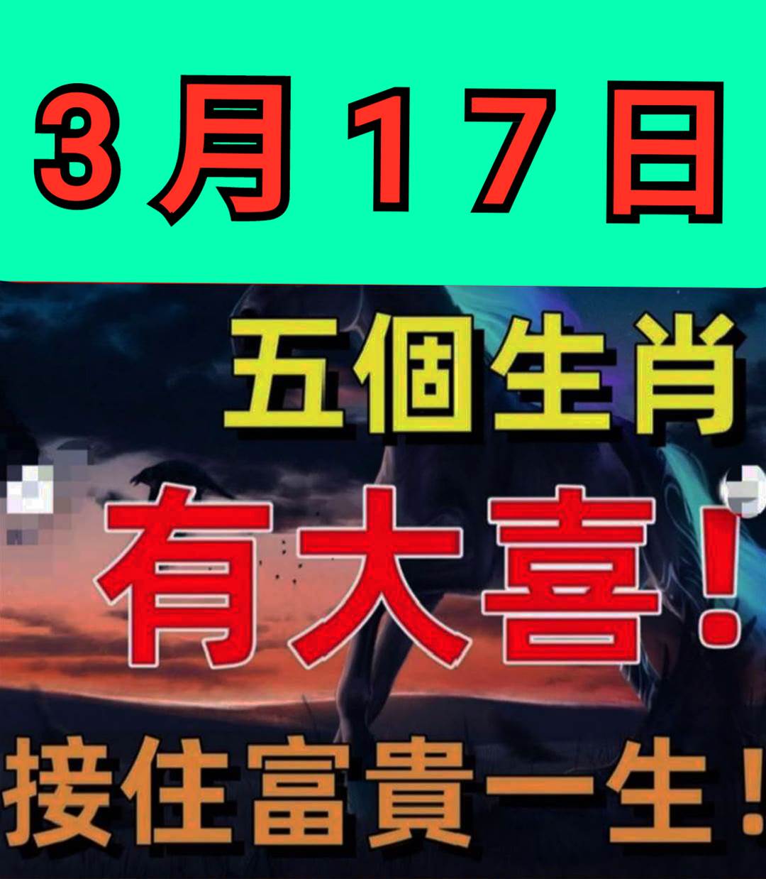明天 「 3月17號 」 三生肖 橫財最旺
