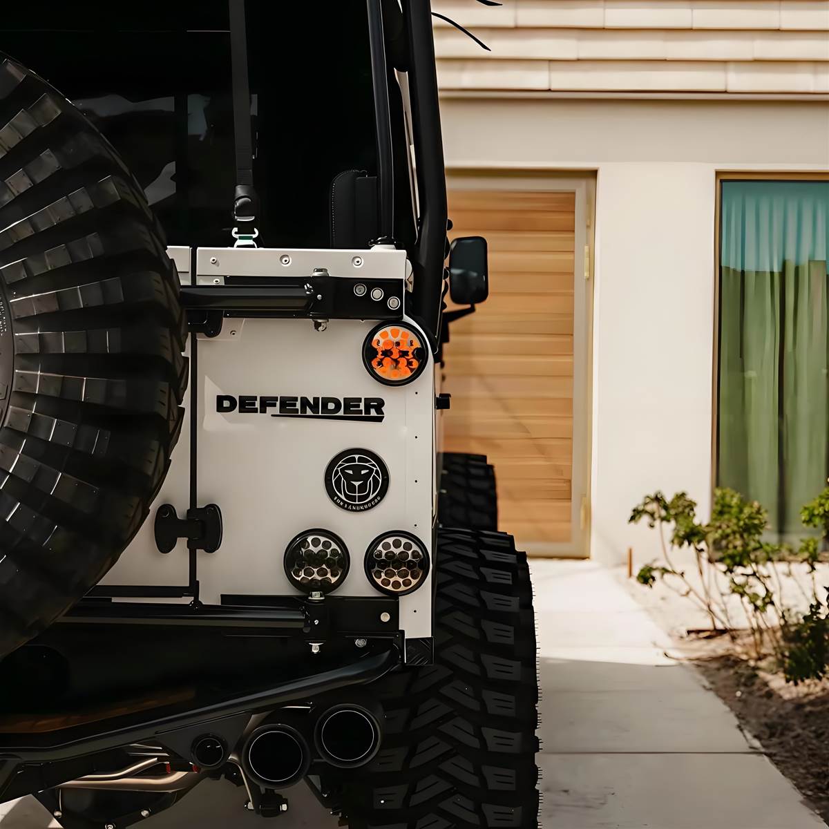 硬派外觀藏巧思,經典輪廓永不褪色!Defender 方正車身、直立車頭與圓形 LED 大燈,一眼辨識越野血統;外露式車門鉸鏈、寬體輪拱搭配 18 吋越野輪胎,粗獷氣質滿點,側開尾門與全尺寸備胎更是經典標誌。台灣提供 90 短軸(3 門)與 110 長軸(5 門)車型,搭配 County 套件等個性化選配,都市荒野皆成焦點!