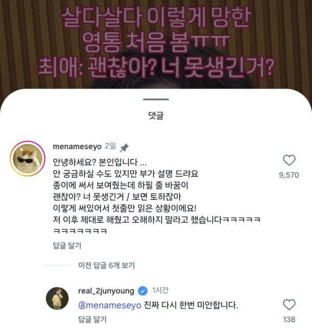 得知事件發酵后,李濬榮本人也親自在該粉絲留言下回復:「真的再次很抱歉。」幽默的回應反而讓網友大呼可愛。